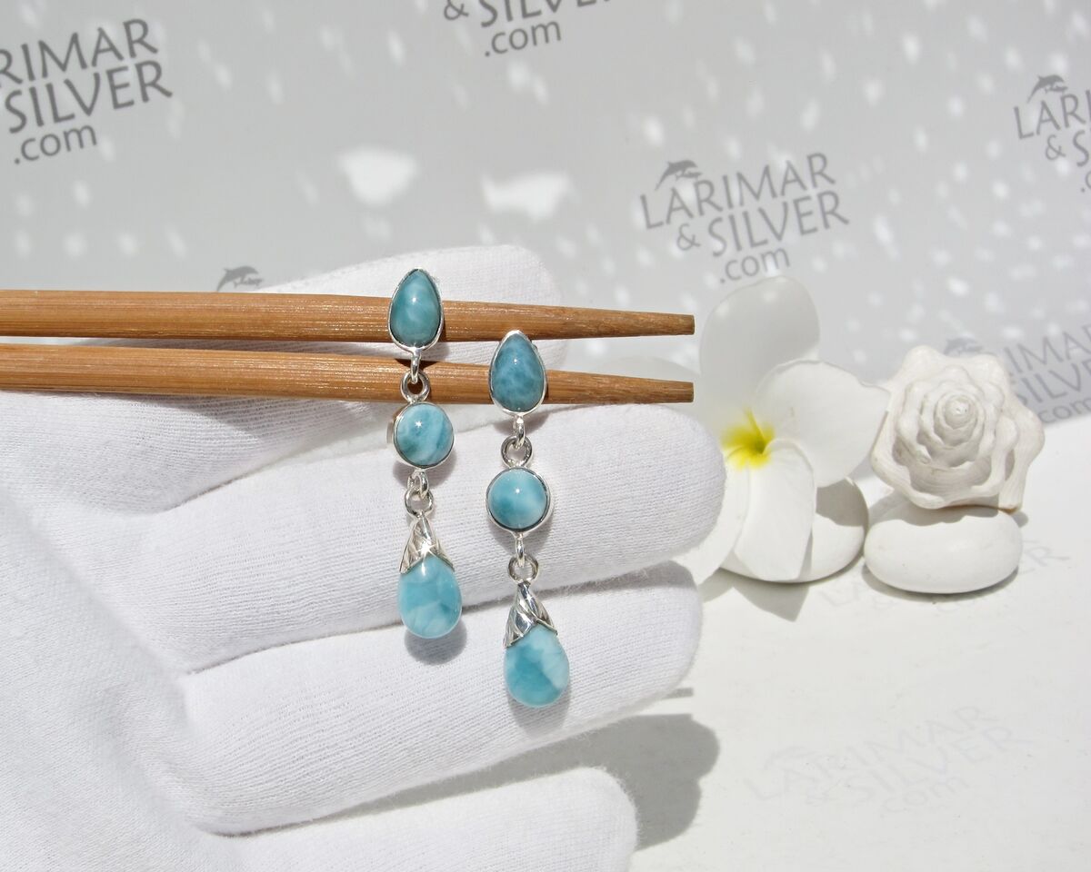 Elegant water blue Larimar drop earrings, Turquoise Rain - ET3362 listed in: