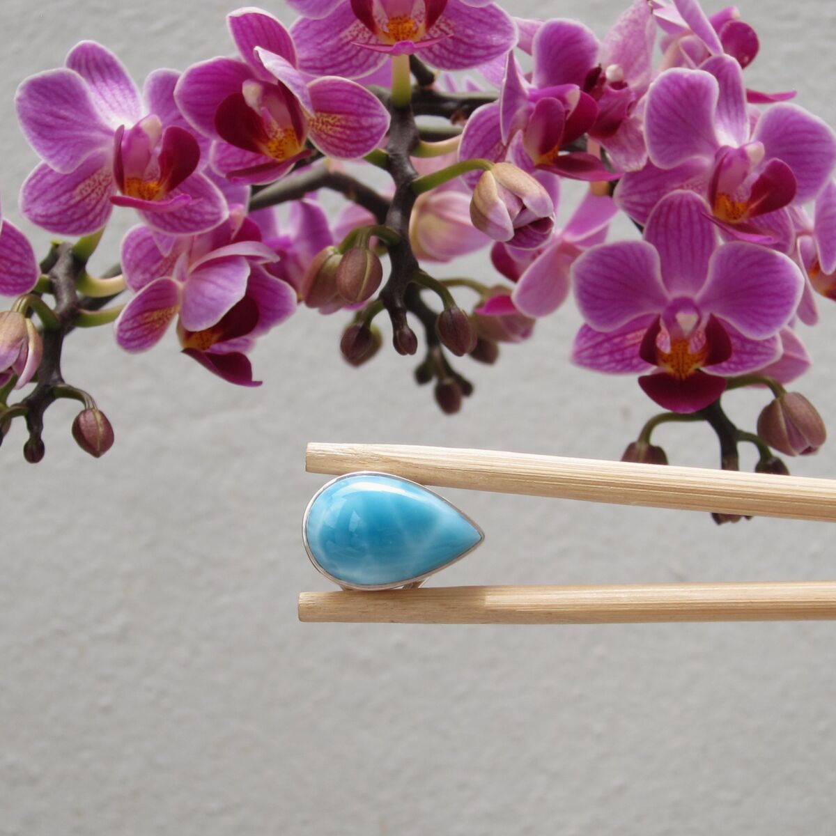 Sea blue Larimar drop ring size 6.75, Sirens don’t Cry - ET3563