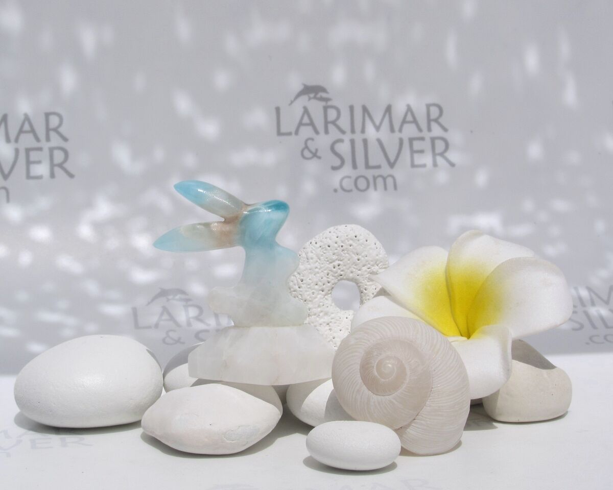 This carved Larimar rabbit gemstone is 100% handmade, mirror polished and nicely set with eco-friendly (.925) recycled sterling silver to create this cute larimar showcase…