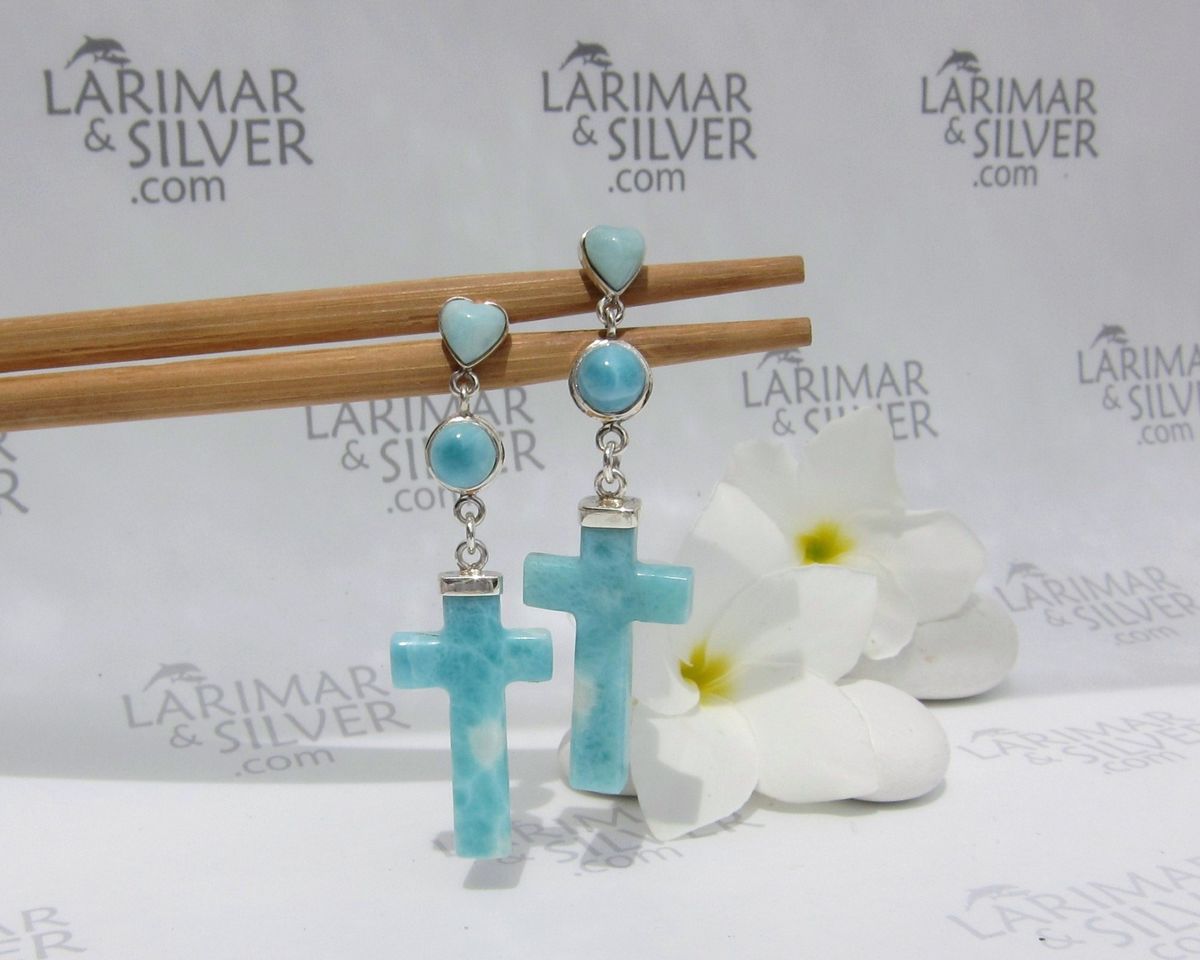 SOLD OUT - Rare Larimar cross earrings by Larimarandsilver, Larimar Glamour 2