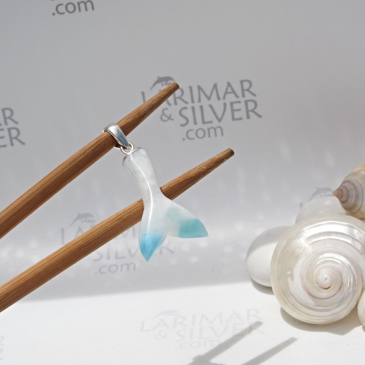- stylish blue white Larimar siren pendant 925 silver little mermaid fast delivery worldwide sister gift