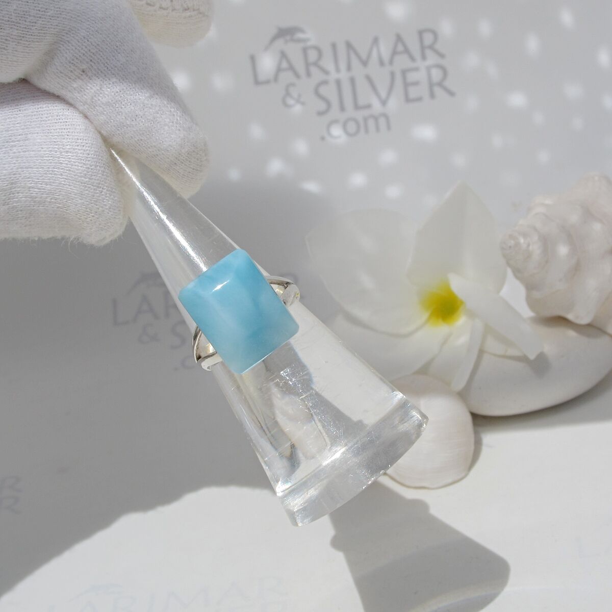 - faceted Larimar rectangle ring 925 silver fast delivery worldwide wife gift