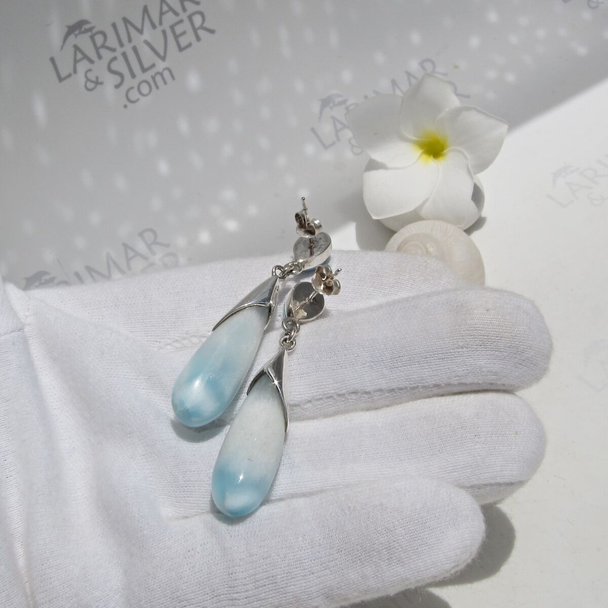 - clear water blue Larimar drop post earrings 925 silver fast delivery worldwide woman gift